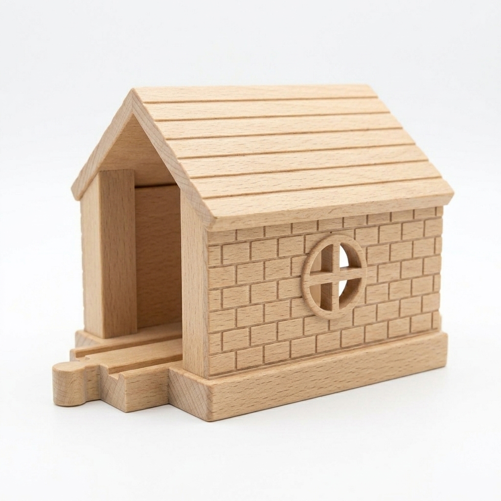 Garaža za Brio i IKEA drvene vozice. Obezbedjuje mesto za parkiranje i čuvanje vozila kada nisu na pruzi.