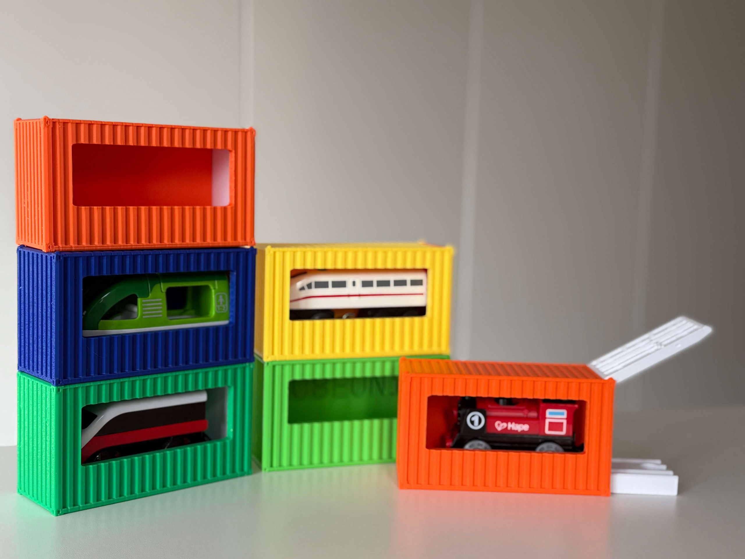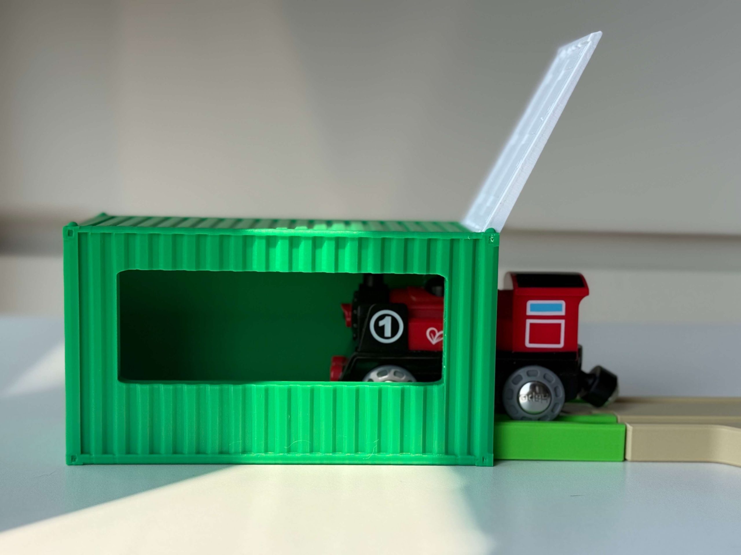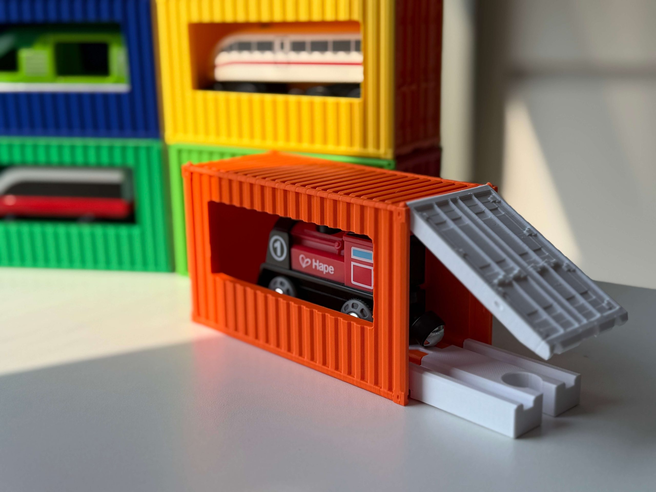 Parking container compatible with IKEA / BRIO / HAPE train sets.