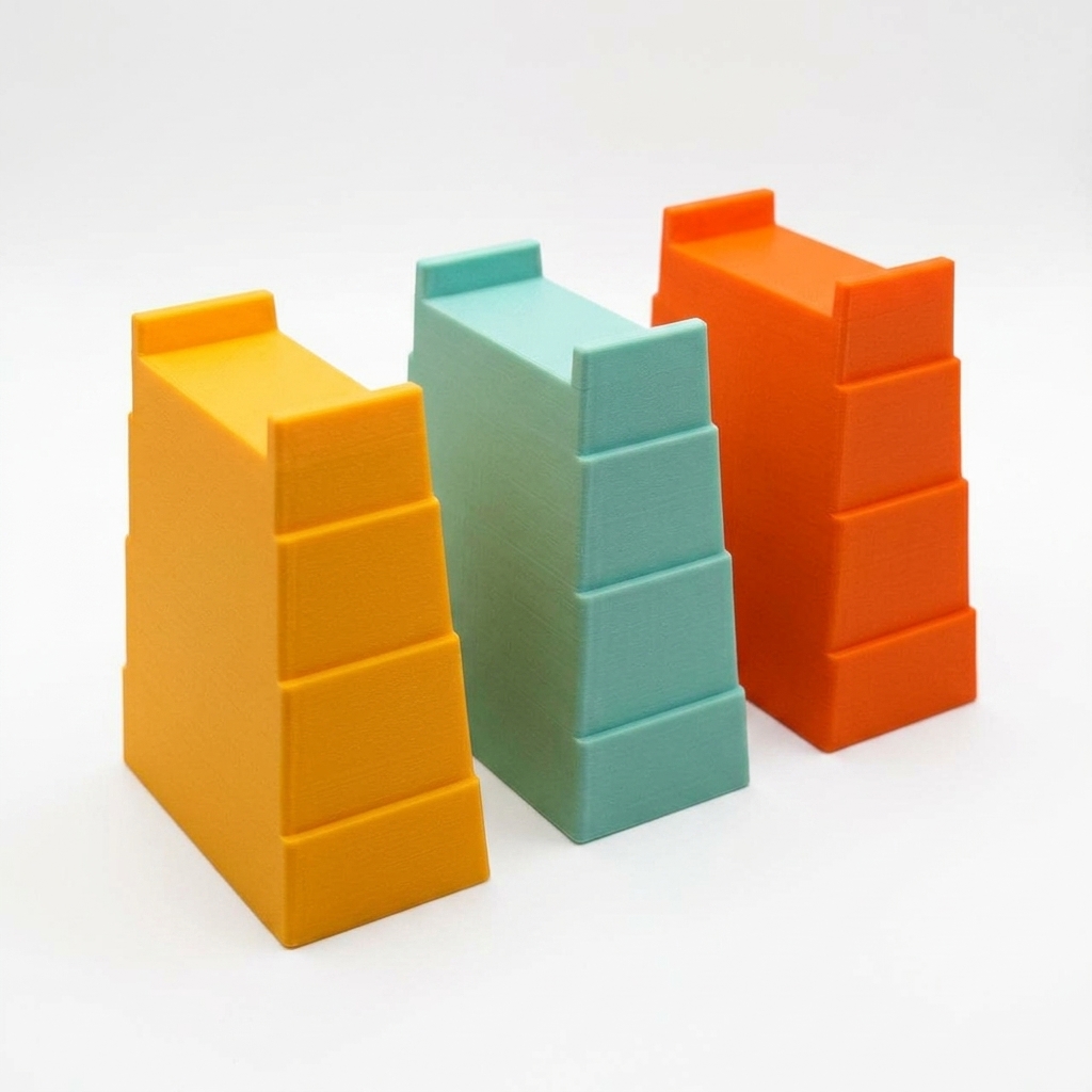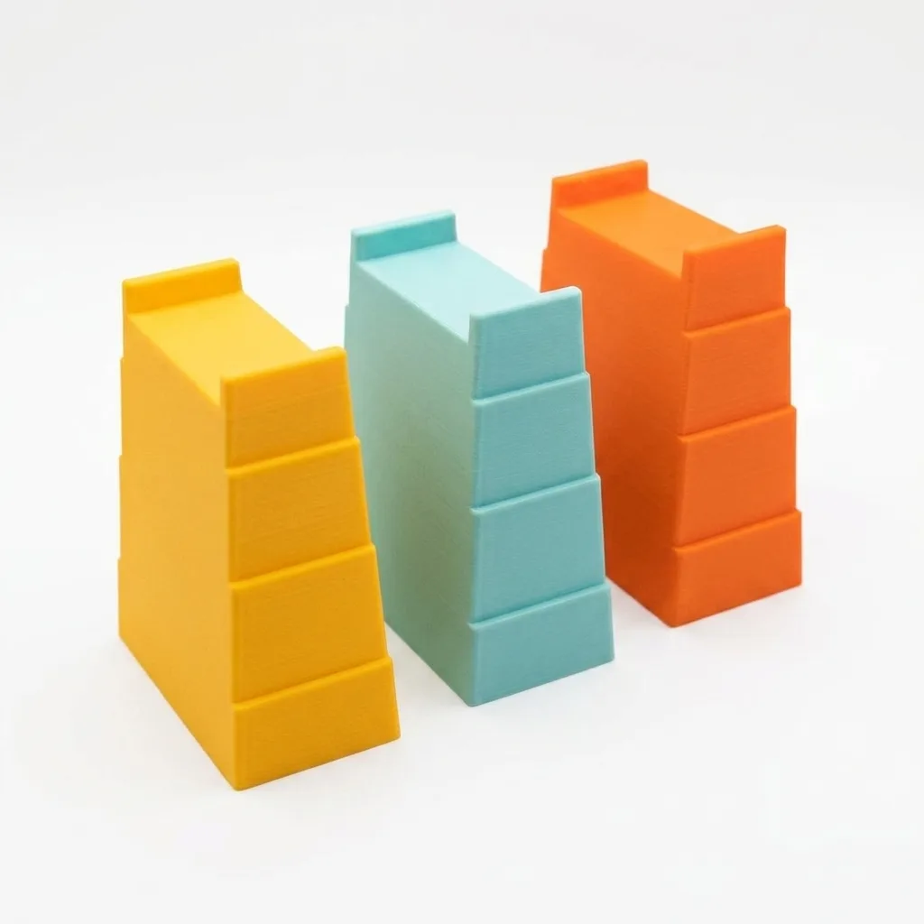 Set obojenih podupirača za most, kompatibilan sa Brio i IKEA drvenim prugama. Ovi podupirači omogucavaju podizanje koloseka na viši nivo za pravljenje mostova, nadvožnjaka i dvospratnih trasa.