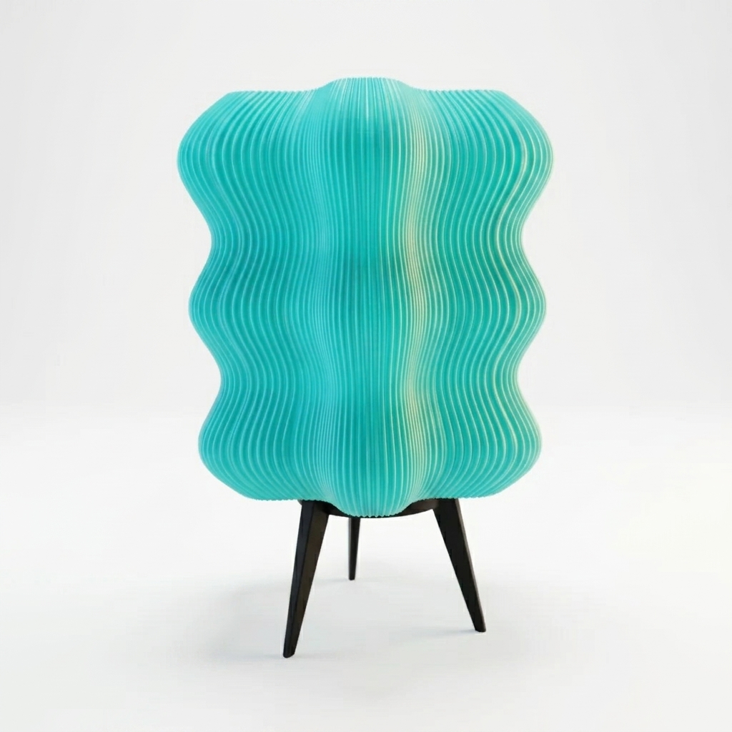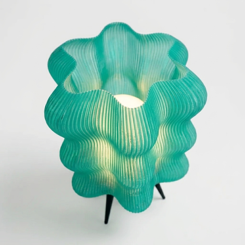 Dekorativna lampa sa izraženim talasastim zidovima i organskim oblicima koji podsećaju na cvetne latice. Unikatan dizajn koji transformiše svaki prostor u skulpturalnu instalaciju svetlosti.