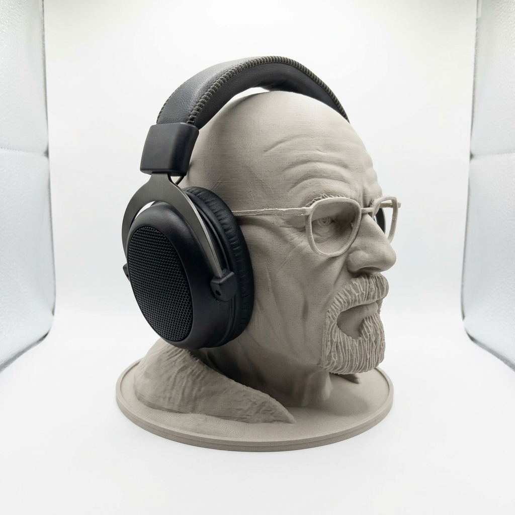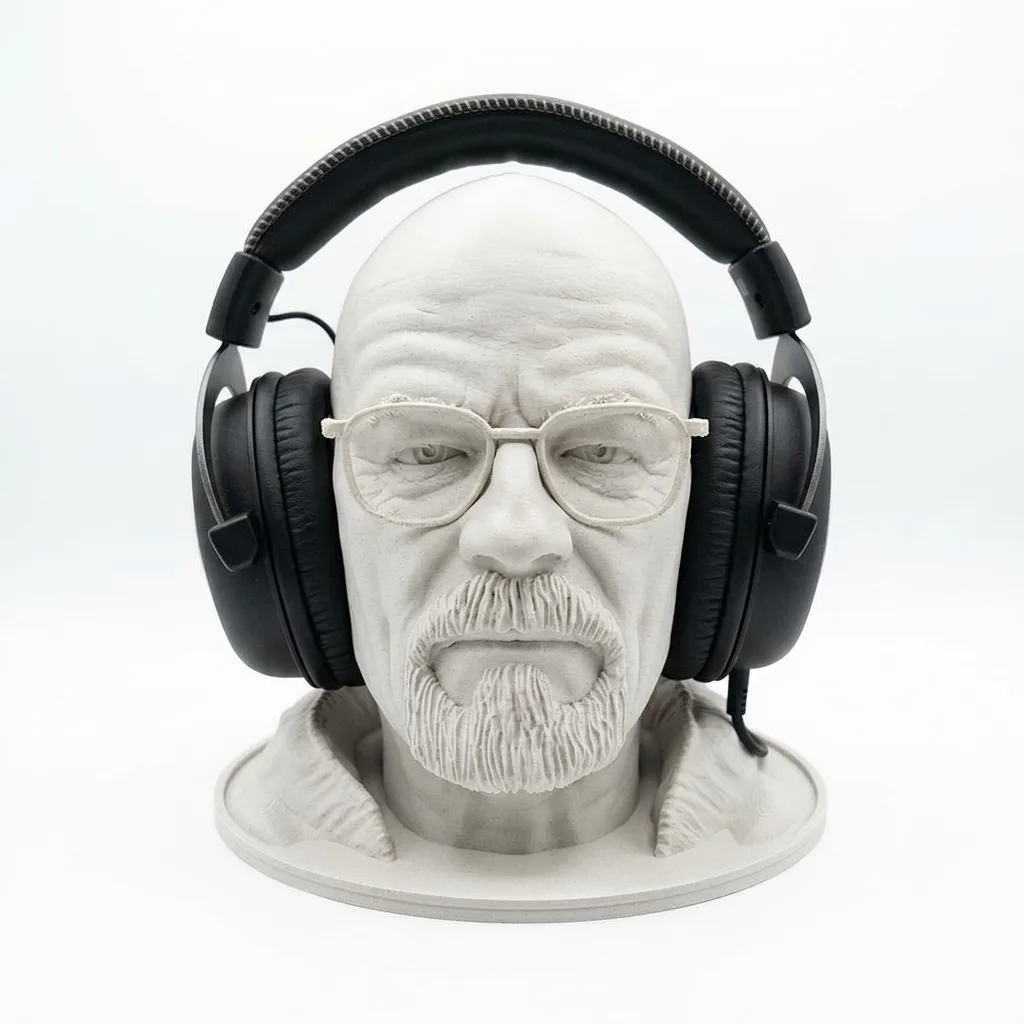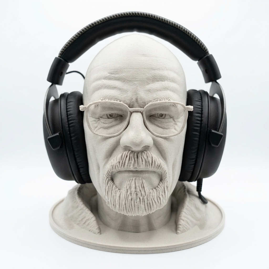 Bista Waltera Whitea iz serije Breaking Bad — funkcionalni držač za slušalice. Detaljna skulptura sa praktičnim hvatištem za naočare i slušalice. Idealna za sto ili policu.