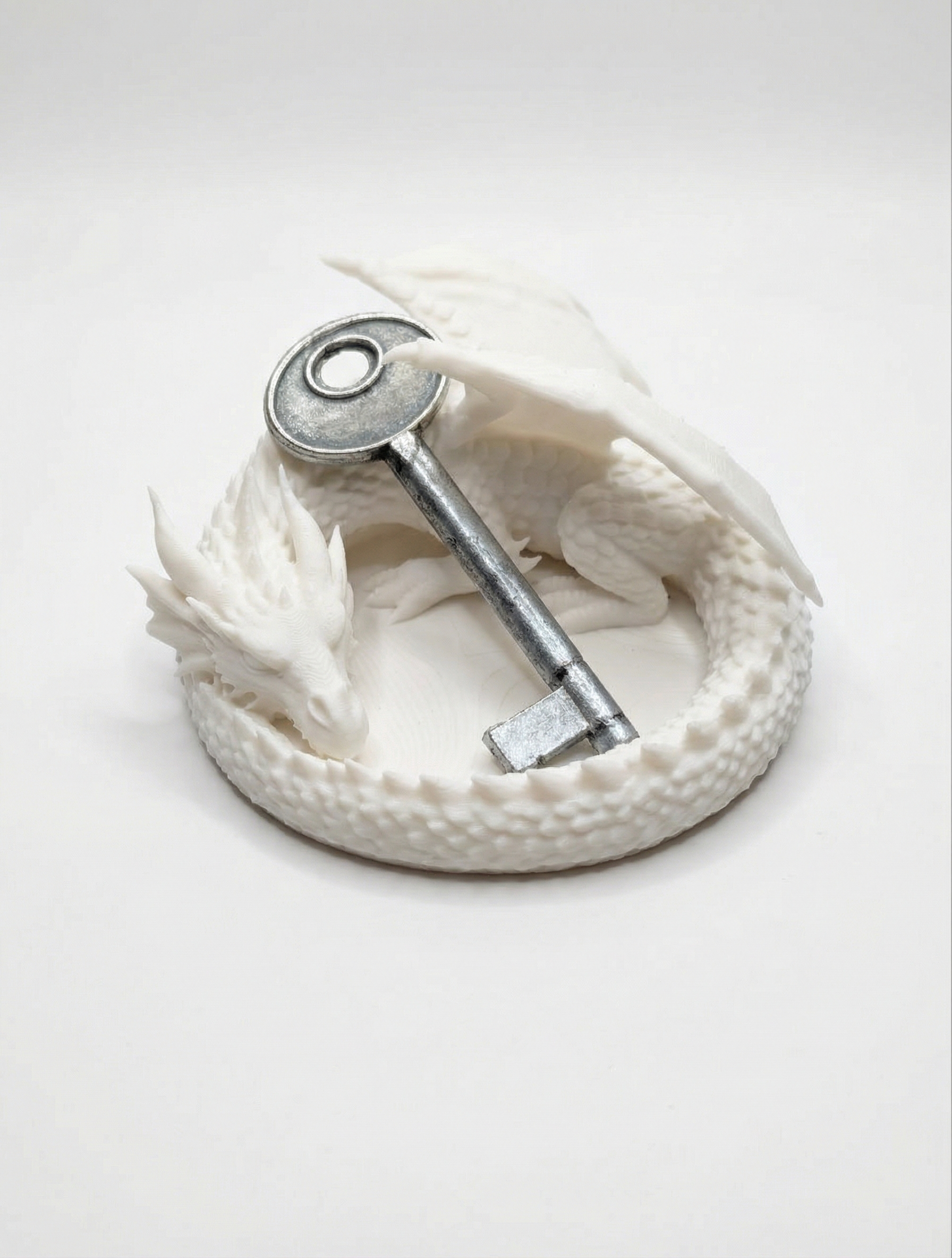 Ovaj zmaj držač za ključeve je mali komad fantazije koji rešava svakodnevnu stvar: da ključevi uvek imaju svoje mesto. Uz to, model je idealan za kreativce — možeš ga ostaviti u elegantnoj beloj varijanti ili ga obojiti i personalizovati.